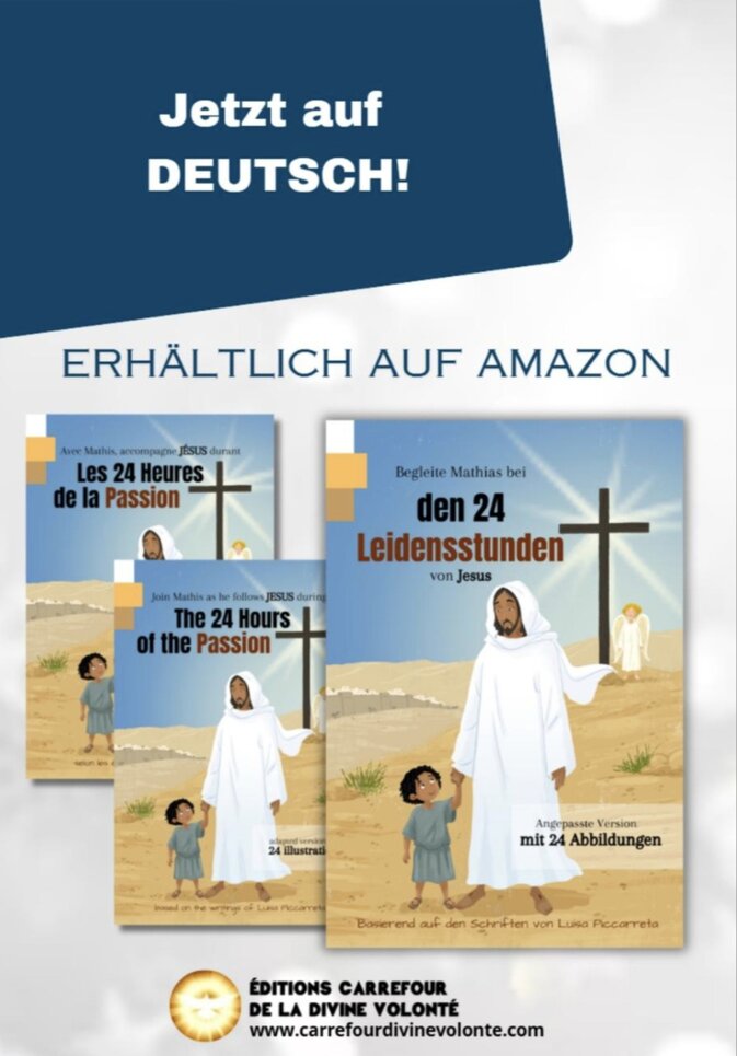 Die hier vorgestellten Texte sollen demnächst auch als Buch in deutscher Sprache erscheinen, das über Amazon bestellt werden kann.Voraussichtlich wird es veröffentlicht werden unter dem Titel:"Die wunderbare Reise von Lukas im Göttlichen Willen"Wir wünschen den interessierten Lesern eine anregende und geistlich fruchtbare Lektüre.